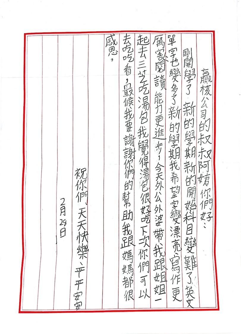 我們在贏核公司收到了您滿懷感激之情的來信,讀到您對學習的熱情和生活中小確幸的分享,我們感到非常溫馨和欣慰。